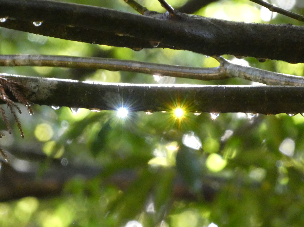 雨上がりの、朝の庭。